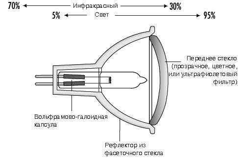 Схема устройства галогенных ламп.