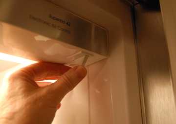- Требуется проверить, горит ли лампочка внутри холодильной камеры, когда дверца открыта. Если она не загорается, то можно попробовать включить агрегат в другую розетку, которая точно является рабочей. Осмотрите вилку и шнур.