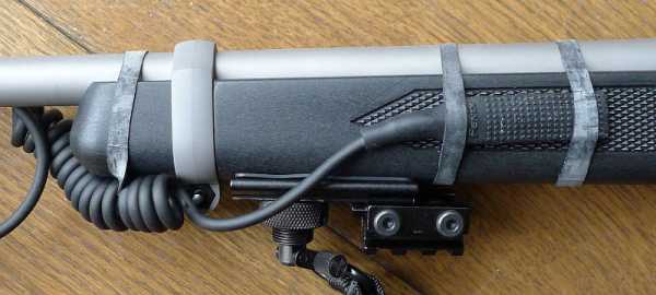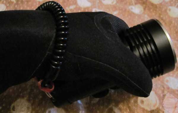 Выносная кнопка от Fenix, закрепленная с помощью резиновых жгутов.