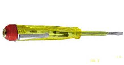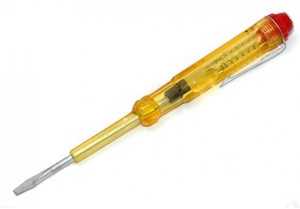 Единственной функцией такого индикатора является определение напряжения на участке электропроводки или контактах оборудования. Стандартный указатель состоит из двух рабочих частей. Одна из них представляет собой плоскую отвертку, осуществляющую непосредственный контакт с деталями, находящимися под напряжением. Вторая часть вмонтирована в ручку отвертки и создает необходимое сопротивление.