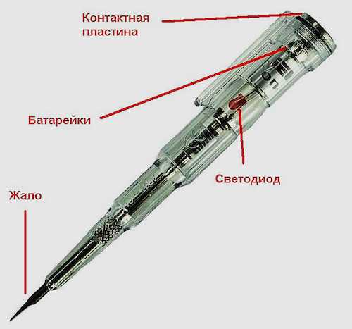 Указатель разделяется на две основных составляющих. Одна из них выполнена в виде плоской отвертки, непосредственно контактирующей с проверяемыми элементами. С помощью второй детали осуществляется бесконтактная проверка напряжения. Обе части, дополняя друг друга, позволяют определить целостность электрической цепи.