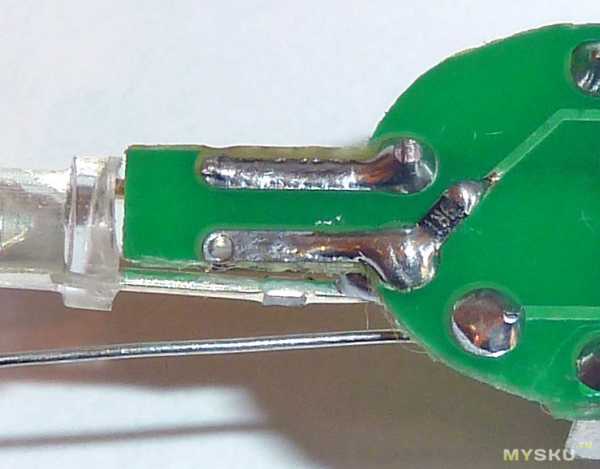 Для защиты пользователя от высокого напряжения между жалом и лампой установлен резистор, но из-за этого индикатор не реагирует на напряжение ниже чем 50-60 вольт.