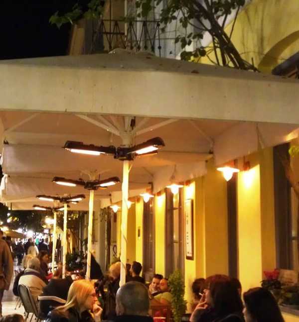 Обогреватели Heliosa на открытой веранде греческого ресторана в Москве