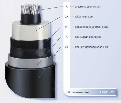 Маркировка силового кабеля 2XS(F)K2Y по стандарту VDE