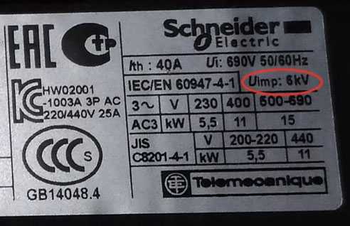 Uimp=6kV – допустимое импульсное перенапряжение.