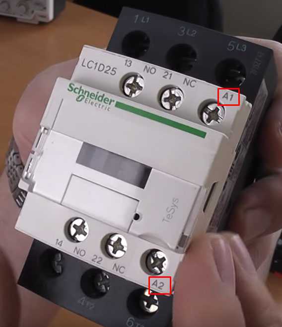 А1 и А2 – это точки подключения катушки управления.