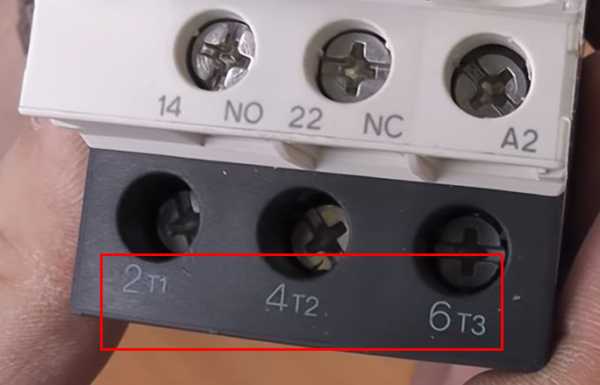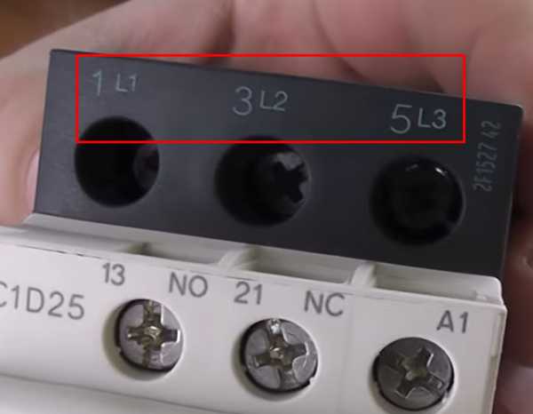 Для трехфазных устройств принцип не изменяется, лишь добавляются дополнительные силовые контакты: