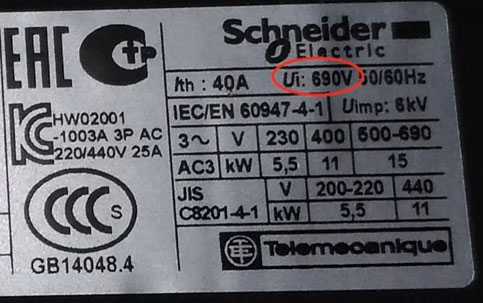Ui=690V – номинальное напряжение изоляции изделия.