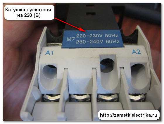 На корпусе также обязательно прописывается напряжение катушки, которая управляет пускателем.