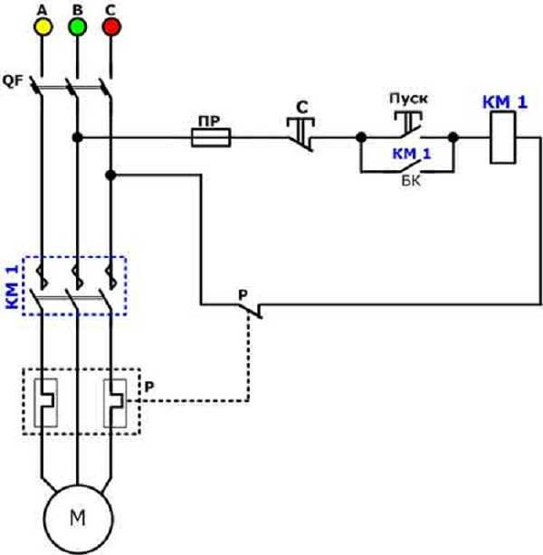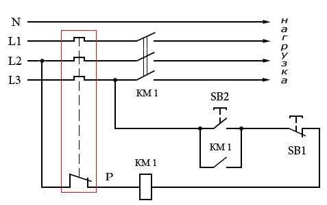 Нередко контактор на однолинейной схеме путают с магнитным пускателем, особенно на больших сложных сборках. Чтобы это не произошло, обращайте внимание на две основные детали: