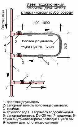 Подключение полотенцесушителя к стояку горячей воды: схема и описание