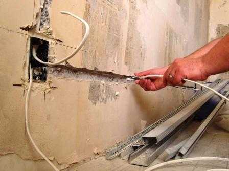 Прокладка нового кабеля в канаву, образовавшуюся после удаления старой проводки