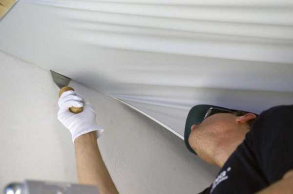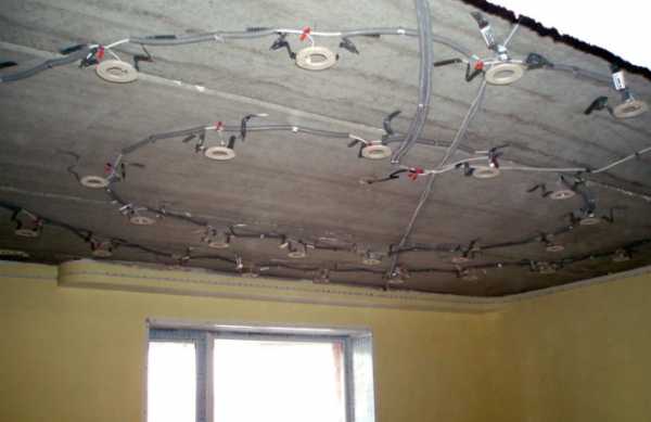 После того как монтаж проводки под потолком будет выполнен, можно приступать к установке натяжного покрытия.
