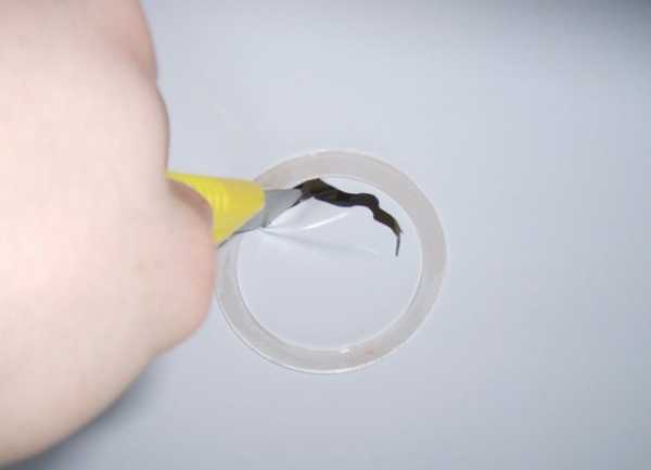 Наибольшие сложности возникают на этапе приклеивания армирующих накладок. Права на ошибку у вас нет – если кольцо приклеится не на свое место, удалить его уже не получится. Поэтому, сперва необходимо максимально точно определить положение закладных. Можно отметить места их расположения смываемым маркером. Когда все точки определены, по отметкам приклеиваются армирующие накладки.