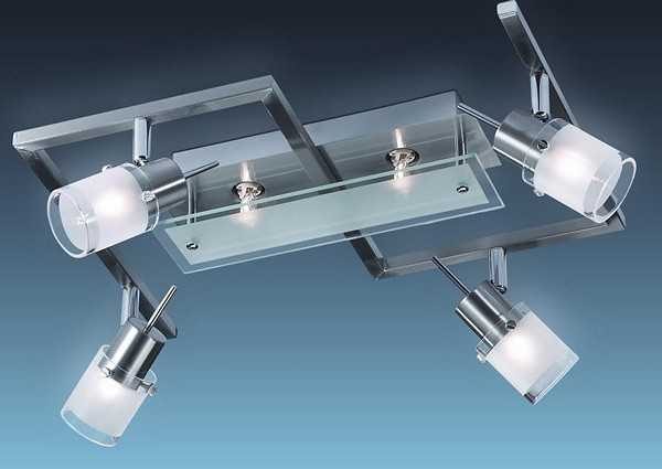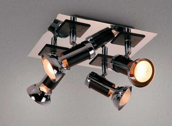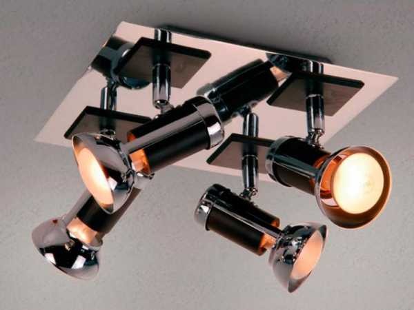 - Сложнокомбинированные споты. Они отличаются от точечных только тем, что в одном корпусе могут размещаться несколько направленных источников света – их довольно часто путают с люстрами. Основное преимущество этих осветительных приборов заключается в том, что с их помощью можно эффективно осветить все помещение – направляя отдельные источники света в определенное место, можно обеспечить освещение даже самых дальних углов.