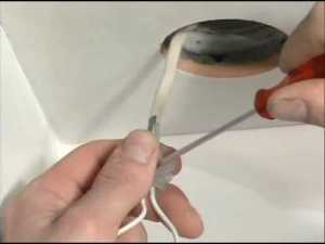 - Прокладка электрического провода. Здесь все достаточно просто – кабель прокладывается от распределительной коробки, где производится его коммутация с выключателем. По-хорошему прокладку электрического провода лучше выполнять еще до того, как будет установлен подвесной или натяжной потолок.