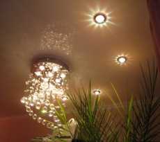 Поэтому выбрать тот дизайн, который подойдет под интерьер помещения, не составит труда. В идеале точечные источники освещения должны сочетаться с люстрой.
