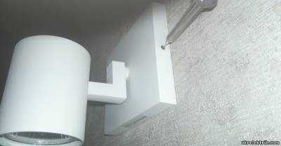 Для фиксации спота на потолке или в нашем случае стене используется специальная монтажная планка, которая зафиксирована с тыльной стороны основания спота. Открутив два винта по бокам корпуса спота, снимаем эту планку. После этого необходимо зафиксировать монтажную планку на стене двумя винтами. Размещать планку стоит в непосредственной близости с питающим кабелем таким образом, чтобы при фиксации планки питающий кабель не был поврежден винтами, которыми будет фиксироваться планка. Установив планку можно приступать к подключению спота.