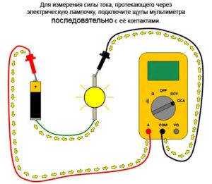 Для определения силы используемого тока прибор подсоединяется к цепи