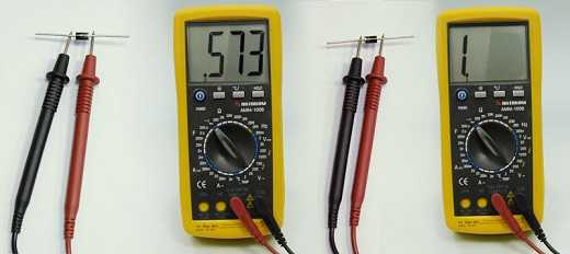 Перед тем как начнётся проверка каких-либо элементов мультиметром, необходимо проверить исправность самого мультиметра. Для этого регулятор прибора нужно установить в положение прозвона, после чего щупы мультиметра прижимают друг другу и если он начинает пищать, то значит он исправен.