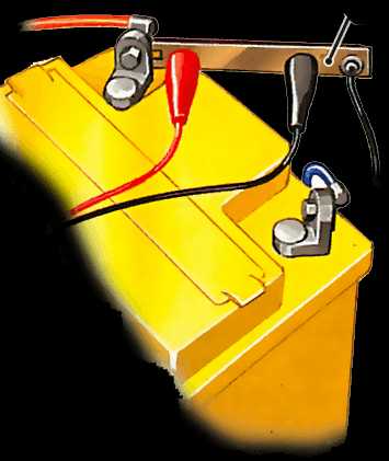 Работая в двигательном отсеке, прикрепите датчик к зажиму заземления на аккумуляторе