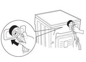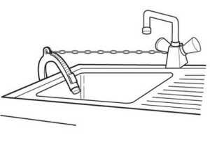 Кроме того, нельзя забывать следит за процессом стирки – неравномерный напор в шланге может сбросить его вниз со всеми печальными последствиями. Поэтому его необходимо фиксировать, например, с помощью шнура или цепочки.