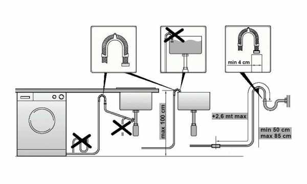 В противном случае не исключено возникновение «сифонного эффекта», когда канализационная система будет самостоятельно буквально «высасывать» воду из машинки.