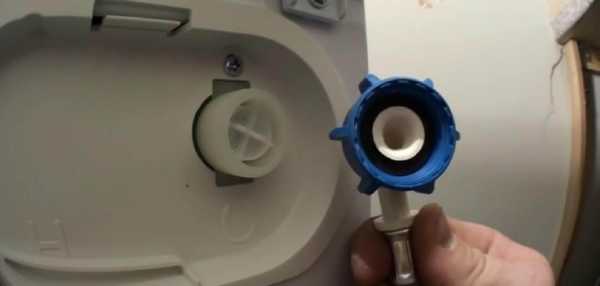 Один его конец, Г-образной формы, подключить не составляет труда – накидная гайка с прокладкой просто вручную с усилием накручивается на патрубок стирального агрегата. Второй – подключается к водопроводу одним из доступных способов.