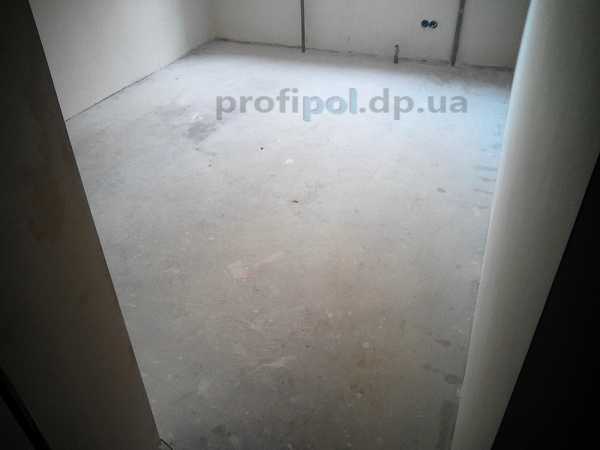 Полы достались нам после шпаклевки стен отделочниками. Шпаклевку, понятное дело, никто за собой не убирал. При мне ни разу не было такого, чтобы шпаклевщики за собой убирали, по всему видать — это ниже их достоинства.