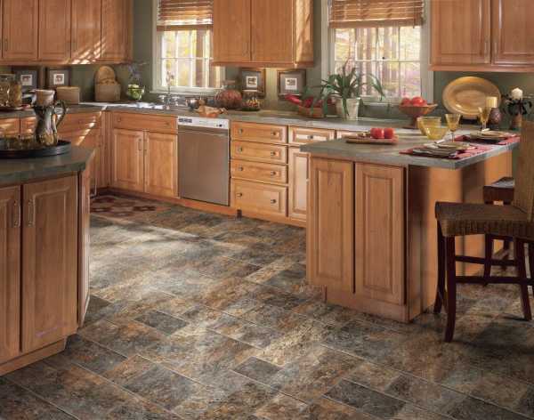 Наливной пол – основной конкурент керамики. Он функционален, экологичен, не боится влаги, перепадов температуры, к тому же достаточно эластичен, чтобы посуда при падении осталась цела. Его ровная поверхность прослужит около 40 лет. Выбор материала достаточно велик.