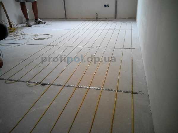 На готовую трубу стяжка заливается после укладки маяков. Необходимый слой, толщина и расстояние устанавливаются по аналогии с электрическим обогревом.