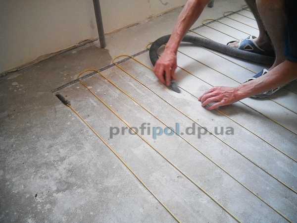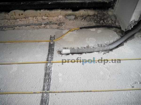 После всех работ по укладке кабеля, производится его заливка. Заливать электрическую конструкцию тёплого пола можно только цементно-песочной смесью, во избежание повреждения самого кабеля и датчика температуры.