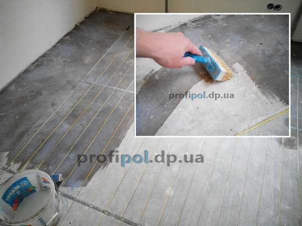 В общем, пылесосим и грунтуем пол, теперь уже вместе с кабелем теплого пола.