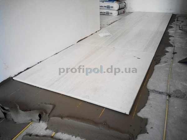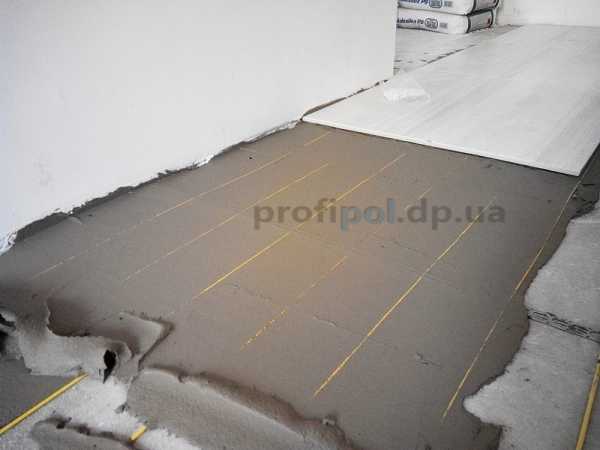 Итак, кабель ТП уложен, теперь можно приступать к укладке напольного керамогранита.