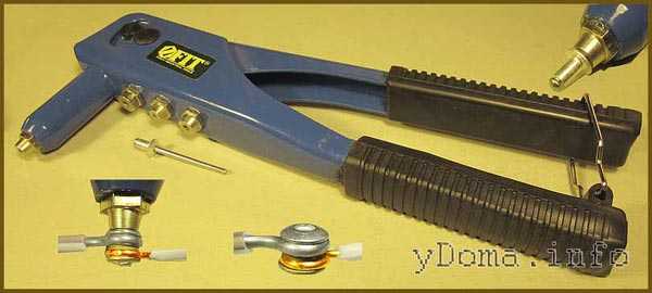 Выполняется по технологии винтового соединения, только вместо винта используется заклепка. К недостаткам следует отнести невозможность разборки и необходимость наличия специального инструмента.