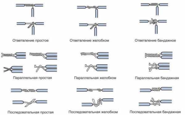 Вот такие схемы Вы можете использовать при скрутке проводов своими руками: