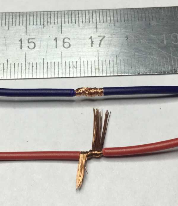 Для получения надежного и красивого соединения необходимо подогнать длины концов проводников со сдвигом на 2-3 см.