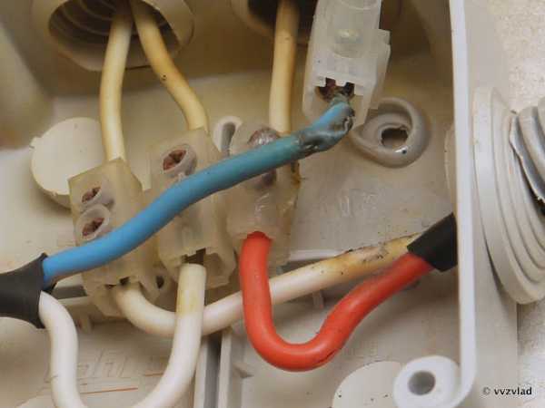 При попытке разъединения столкнулся, казалось бы, не преодолимым препятствием. Концы проводов обламывались даже без приложения усилий. Со временем медь потеряла эластичность и стала хрупкой. При зачистке провода изоляцию, очевидно, подрезали лезвием ножа по кругу и сделали насечки. В этих местах провод и обламывался. Медь от колебаний температуры закалилась.