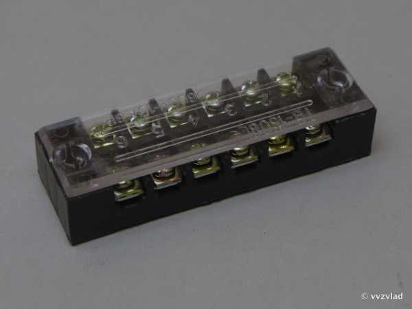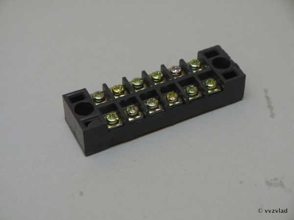 Соединение проводов с малой токовой нагрузкой можно, выполнять с помощью клеммных колодок. Конструктивно все клеммные колодки устроены одинаково. В гребенки корпуса из пластика или карболита вставляются толстостенные латунные трубки с двумя резьбовыми отверстиями по бокам в каждой. В противоположные концы трубки вставляются соединяемые провода и закрепляются.