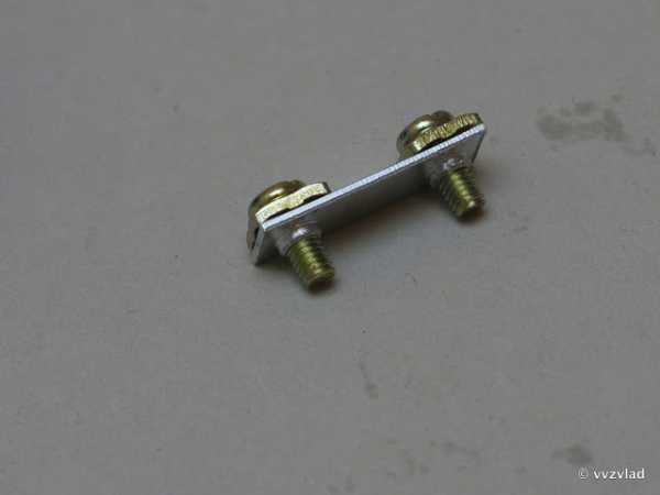 С проводов снимается изоляция на длину, равную четырем диаметрам винта. Если жилы покрыты окислом, то он удаляется с помощю наждачной бумаги и формируются колечки. На винт одевают пружинную шайбу, простую шайбу, колечко одного проводника, простую шайбу, колечко другого проводника, шайбу и в довершение гайку, завинчивая винт в которую весь пакет стягивают до выпрямления пружинной шайбы.