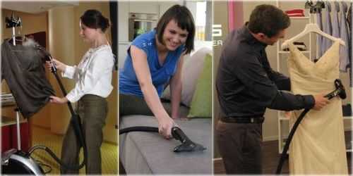 С помощью отпаривателя, помимо всего прочего, можно избавиться от пятен на мебели и одежде. Для этого следует воздействовать на загрязненное место сильной струей пара, а образовавшуюся влагу счистить при помощи салфетки.