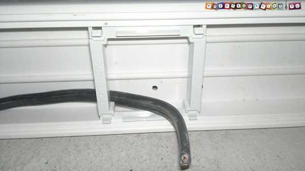 3.Вставляем суппорт в кабель канал, как показано на изображении ниже и выводим через него питающий кабель. Главная задача суппорта, не давать кабель каналу в месте его установки прогибаться.