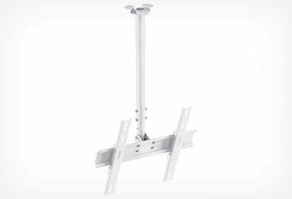 Если вышеперечисленные способы, как повесить телевизор на стену с кронштейном или без него пользователю не подходят. То можно воспользоваться способом потолочного крепления. Такой вариант очень удобен, варианты моделей бывают разными.