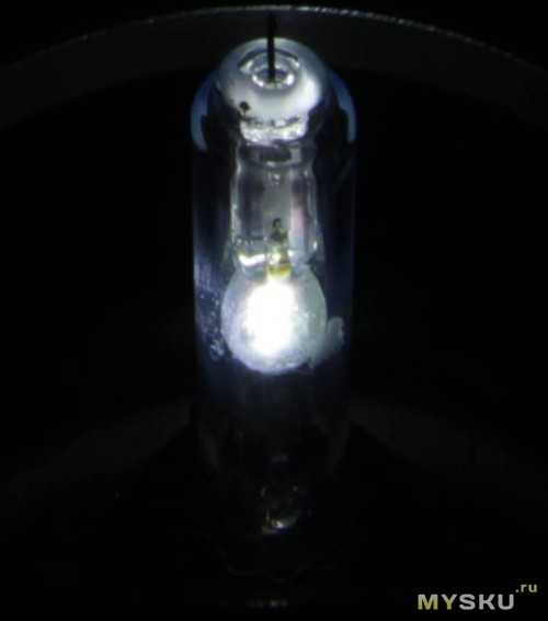 Не забывайте, что лампе необходимо время для разогрева. Потом начинает реально светить.