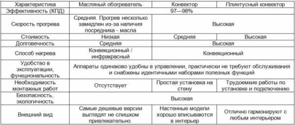 Узнайте, что лучше: конвектор или масляный обогреватель. Наглядная сравнительная таблица.