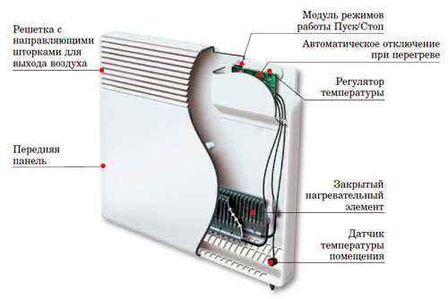 После остывания на несколько градусов нагревательный элемент снова включается, поддерживая заданную температуру в помещении. Передвижные конвекционные обогреватели, что оборудованы колесиками, снабжены датчиком защитного отключения при опрокидывании аппарата. Более дорогие модели поставляются с ЖК-дисплеем и кнопочным управлением, а также таймером, программируемым на работу прибора в определенные часы.