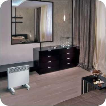 Получается, что конвекторный обогреватель — это аппарат прямого нагрева воздуха, вызывающий конвективное движение воздуха через себя и не выделяющий инфракрасного излучения. Эти изделия имеют плоский элегантный корпус без ребер и производятся в двух исполнениях: настенном и передвижном, на колесиках. Касательно функциональности приборов можно сказать следующее: самые простые модели комплектуются терморегуляторами, призванными по сигналу датчика отключать ТЭН при достижении установленной температуры воздуха.