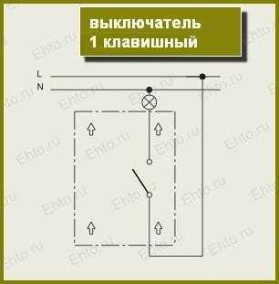 Выключатель света является несложным механическим устройством, основная функция которого – управление освещением, принцип действия - замыкание и размыкание электрической цепи на пути к светильнику. Чтобы правильно сделать электропроводку для него, необходимо хорошо понимать принцип действия и схему работы выключателей. Для начала рассмотрим схему подключения одноклавишного выключателя (представлена ниже).