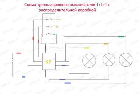 В торговых сетях имеются переключатели с тремя клавишами. Схема их подключения чуть сложнее, но в целом схожа с приведенными ранее.