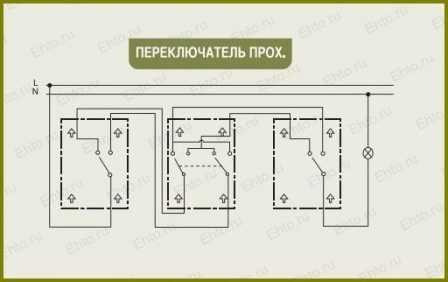 Подробнее о схемах подключения проходных выключателей, мы уже рассказывали ЗДЕСЬ.